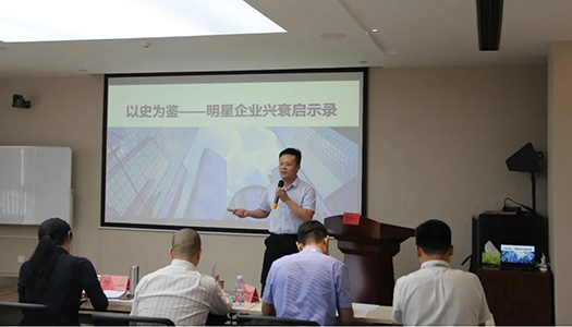 ▲鄭州地產集團投資管理有限公司 總經理 于通 試講《以史為鑒 明星企業興衰啟示錄》