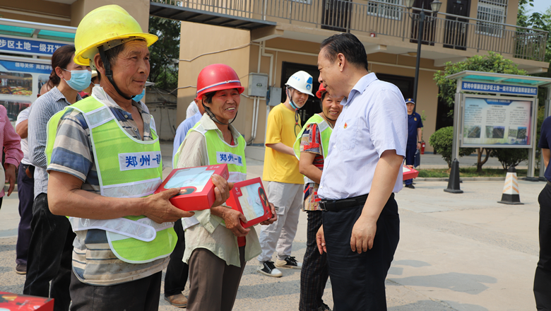為切實做好防暑降溫工作,給項目工友送去清涼,鄭州市總工會精心準備了夏季防暑降溫用品和礦泉水。市總工會、消防救援支隊領導為一線職工送去防暑降溫用品,慰問看望一線職工,將工會組織的關懷送到職工心坎上。